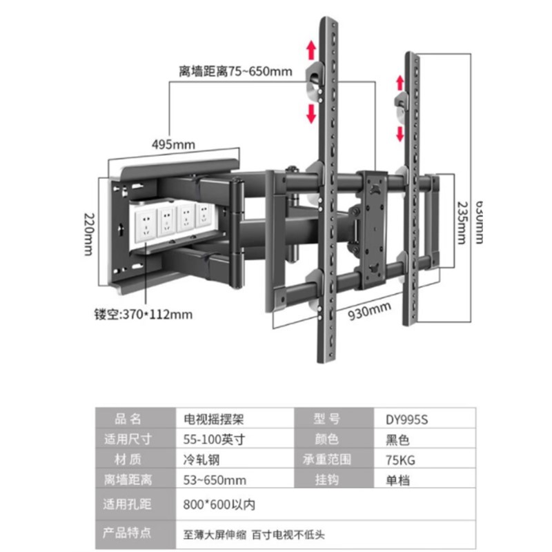 超薄電視機(jī)掛架,適用98英寸電視伸縮旋轉(zhuǎn)支架。